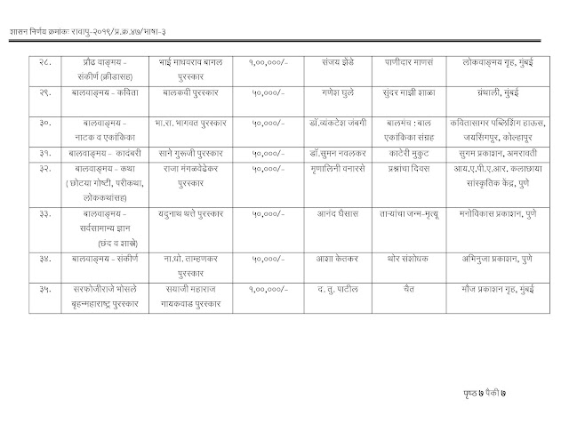 पुरस्कारांची यादी खालील प्रमाणे :-